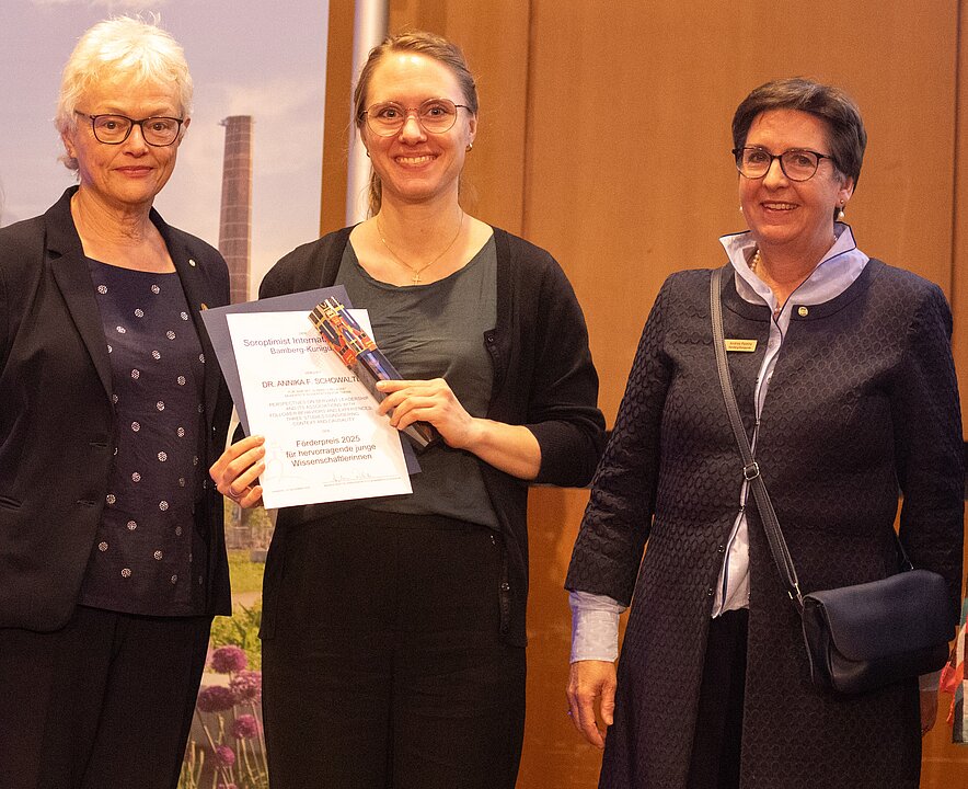 Der Soroptimist-Club Bamberg Kunigunde hat den mit 1000 EUR dotierten Promotionspreis 2025 am Montag, 10. November, im Rahmen des Stiftungsfestes der Universität Bamberg an die Psychologin Dr. Annika F. Schowalter aus Burgebrach verliehen.